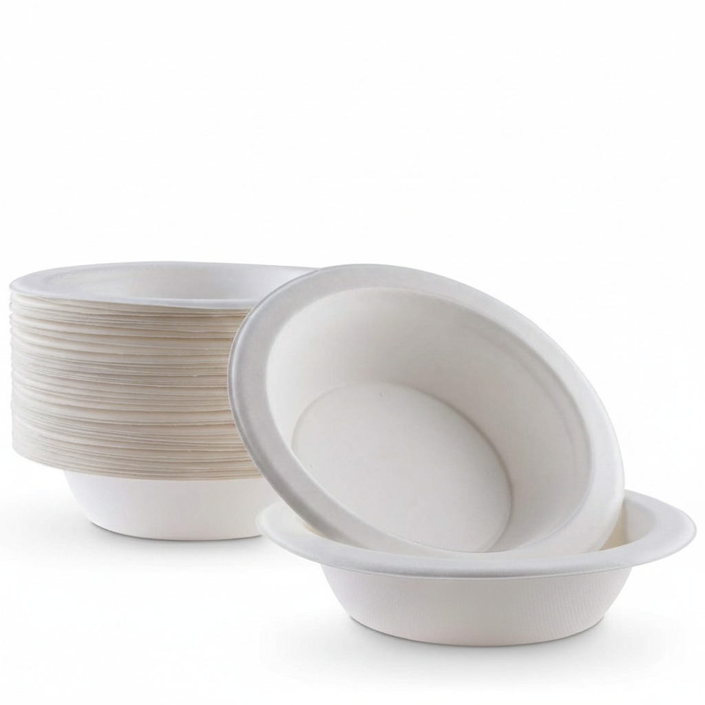 Our 8oz Bagasse Soup Bowl is made from 100% sugarcane bagasse, offering a biodegradable and compostable alternative to plastic disposables. It is strong, leak-resistant, and suitable for both hot and cold foods.